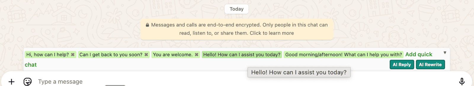 When a new message arrives, click the “AI Reply” button above the chat box. It will give suggestions based on the last message that you can instantly use.