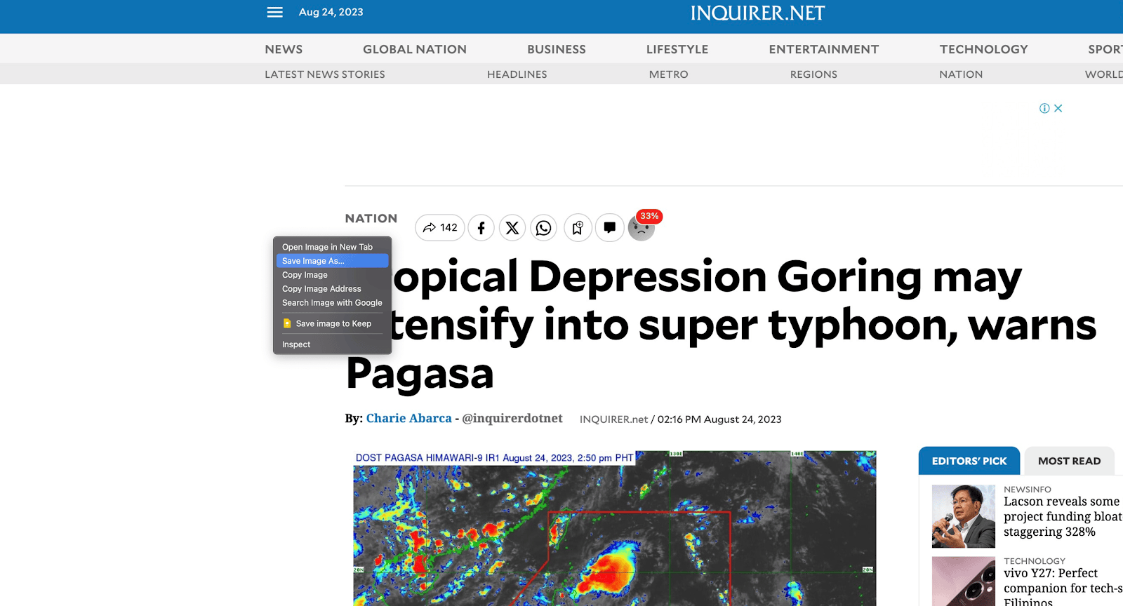 Tampilkan Gambar Layar Penuh memungkinkan Anda menyimpan gambar ke folder yang Anda inginkan. Klik tombolnya, dan pada tab yang baru dibuka, klik kanan dan pilih Menyimpan gambar sebagai. Pilih folder tempat Anda ingin menyimpan gambar Anda.